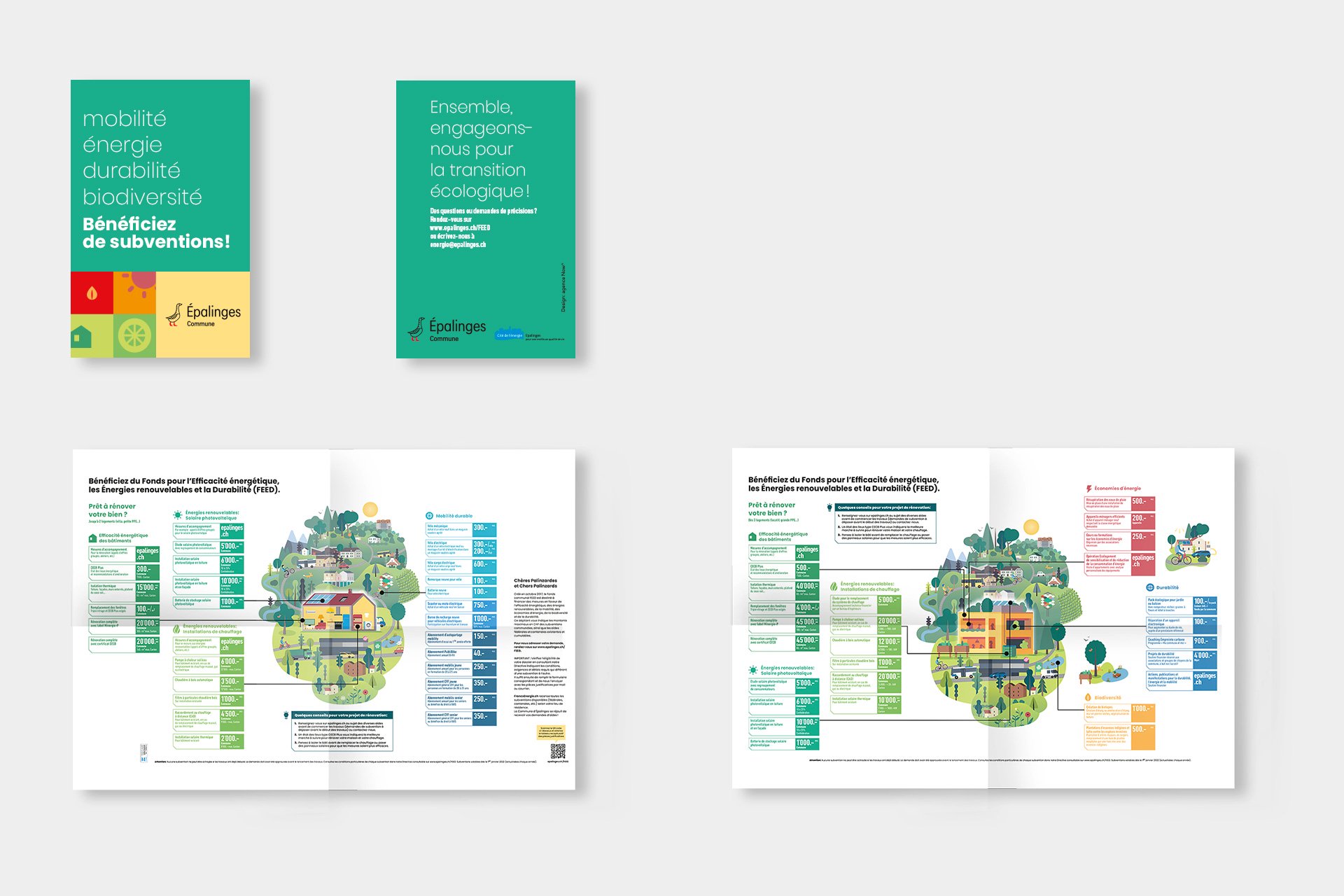 La Commune d’Épalinges souhaitait créer un flyer destiné à ses habitants, pour les guider dans leurs démarches de rénovation ou autres projets allant dans le sens des énergies renouvelables et de la durabilité.