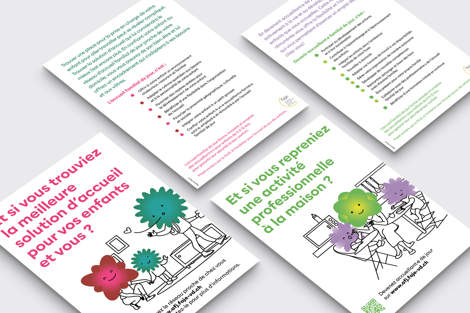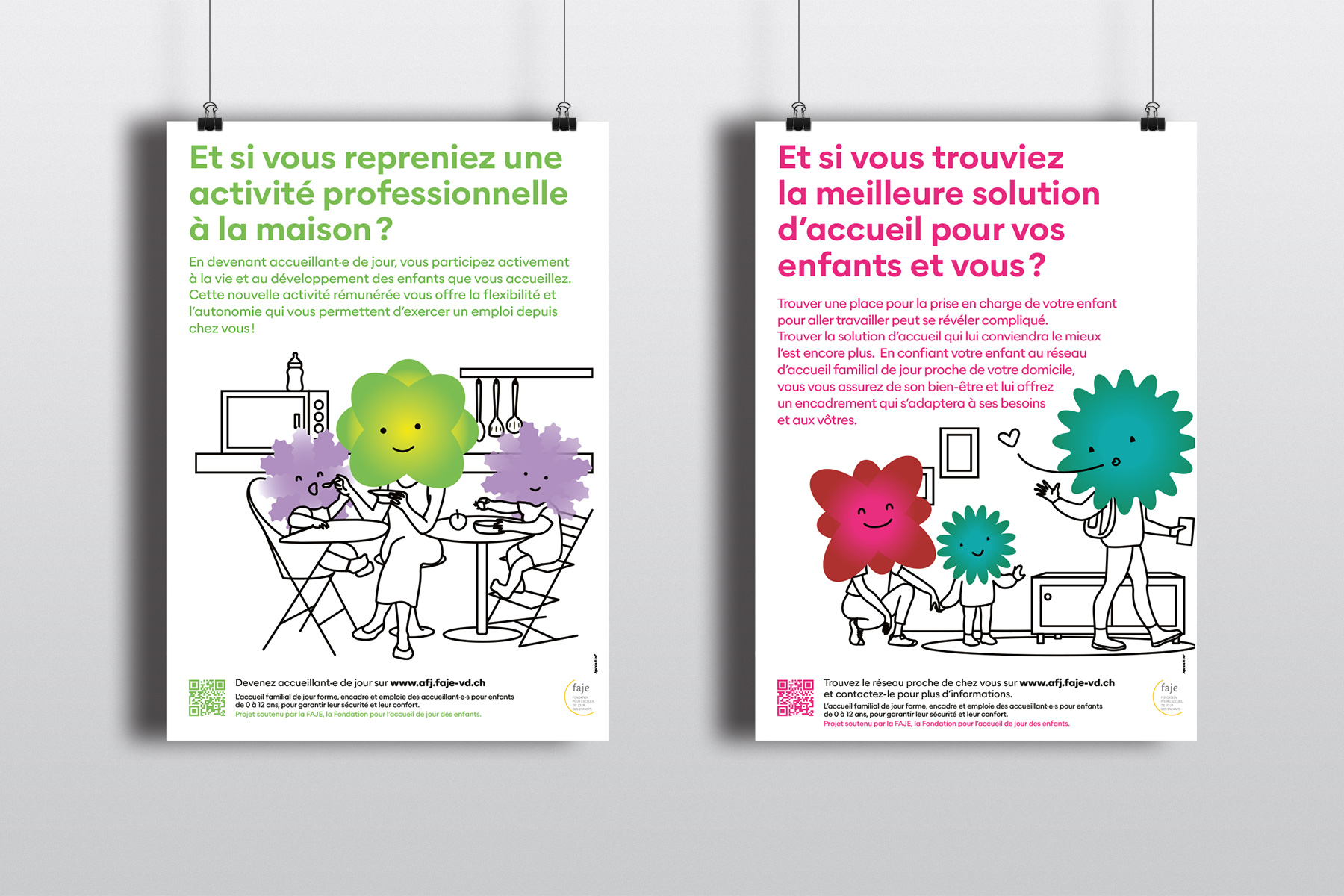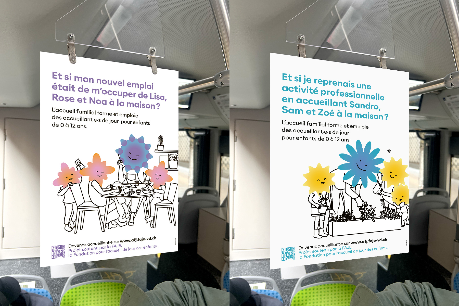Le premier volet s’adresse aux adultes du canton, afin de leur faire découvrir l’accueil familial de jour comme opportunité professionnelle et les inciter à devenir accueillant·e·s. Le second vise les parents, pour les sensibiliser à cette solution de garde adaptée à leurs besoins.
