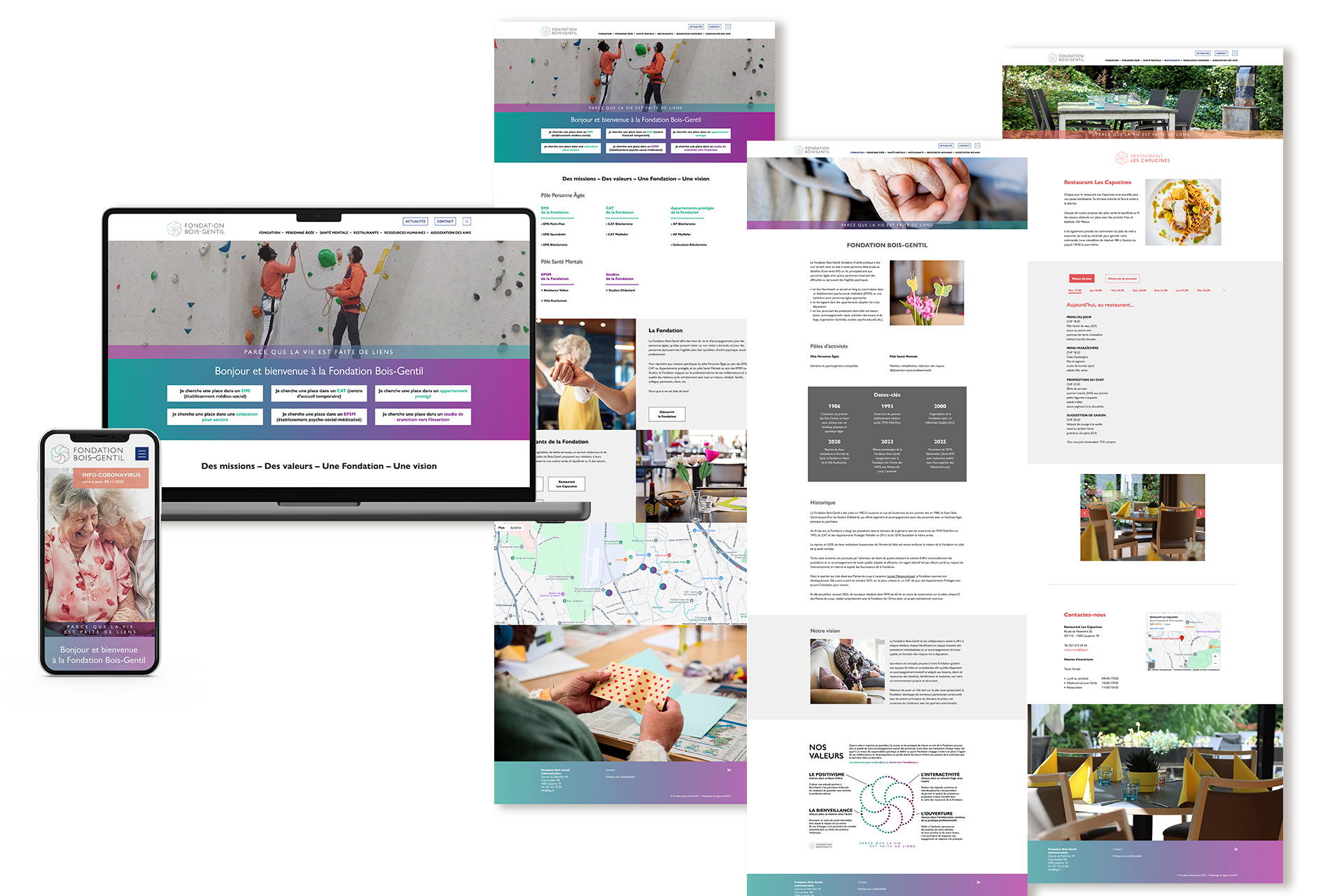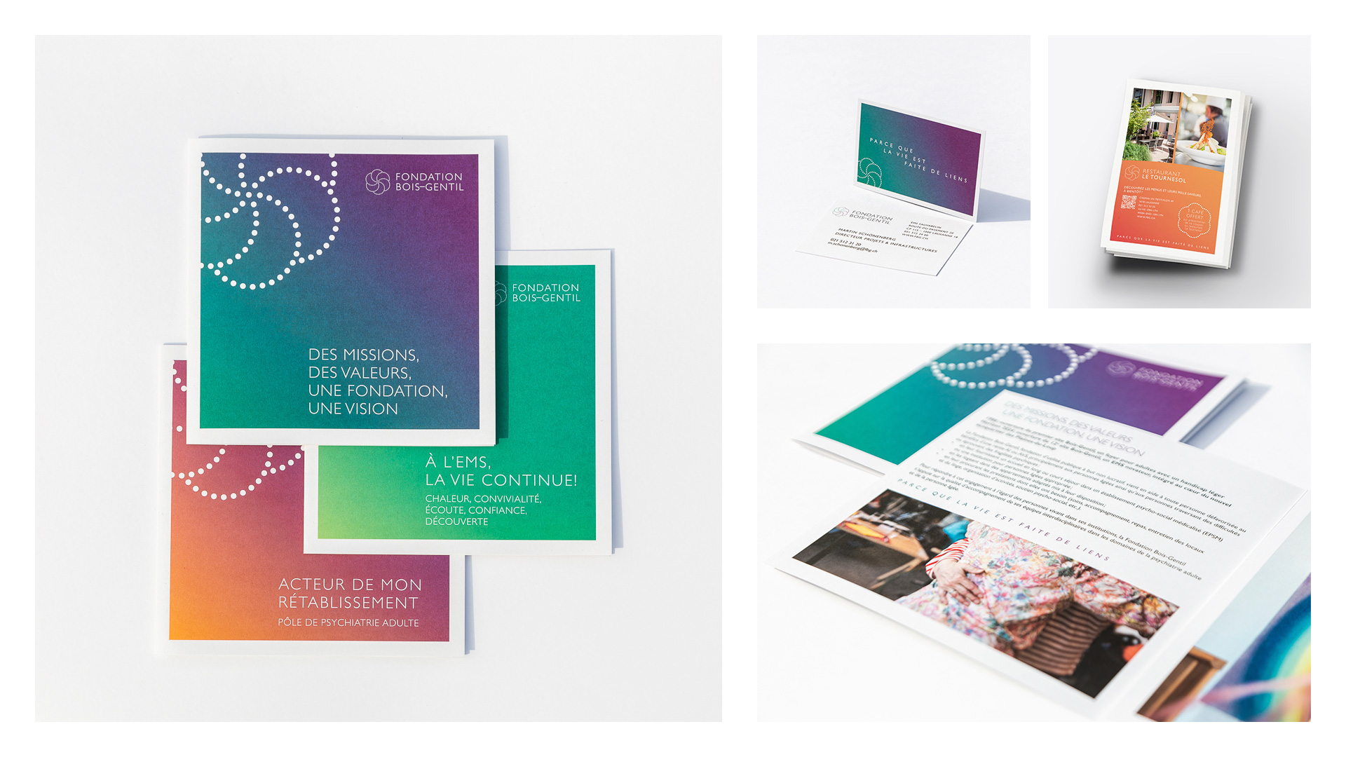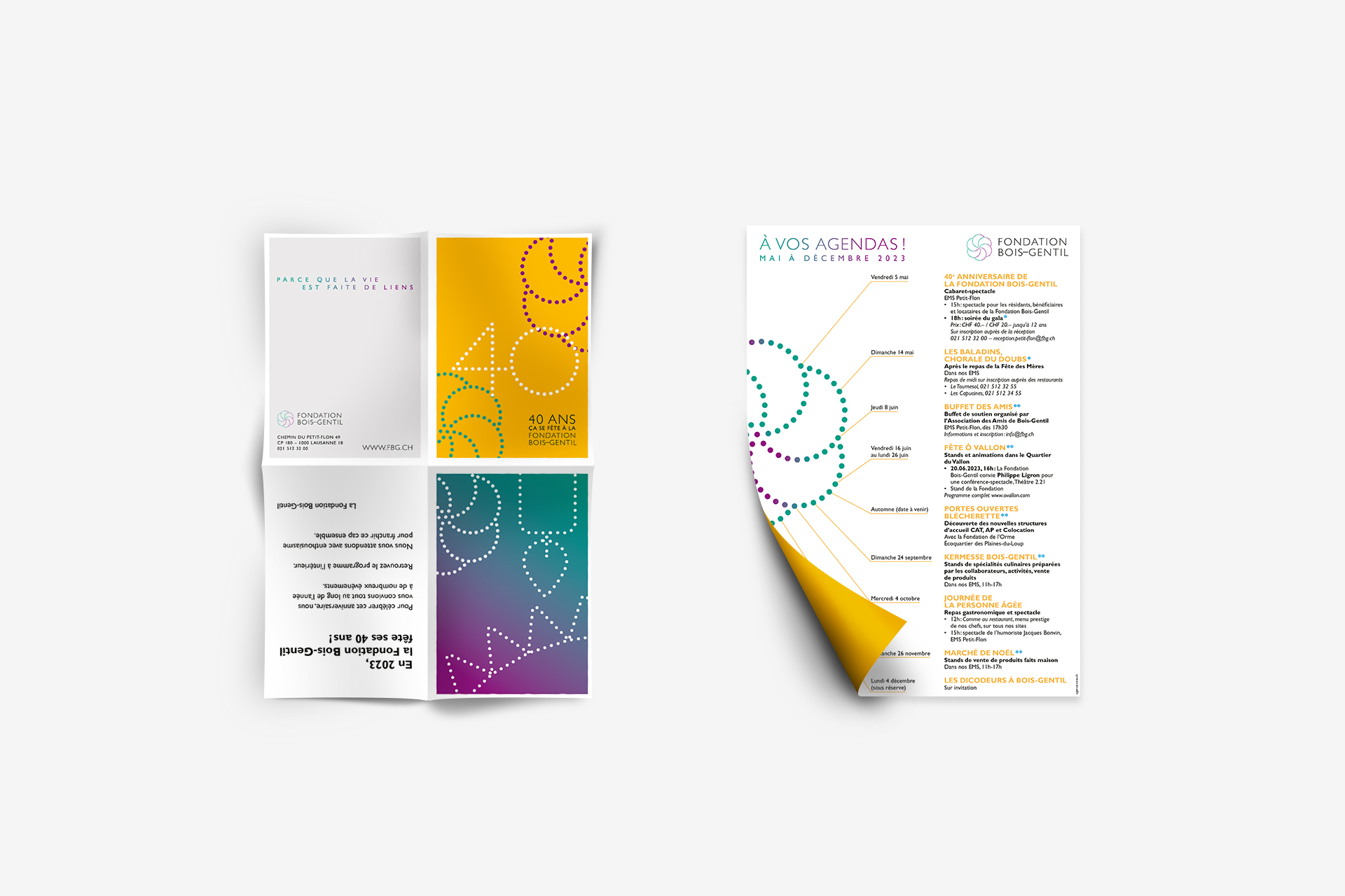 Lorsque la Fondation Bois-Gentil a pris contact avec NOW*, elle cherchait une agence pour lui créer une nouvelle identité. Un excellent travail de recherche avait déjà été réalisé en amont par les élèves du SAWI, dont est née la signature «Parce que la vie est faite de liens». C’est de là que nous sommes partis pour inspirer l’ensemble de notre créativité.