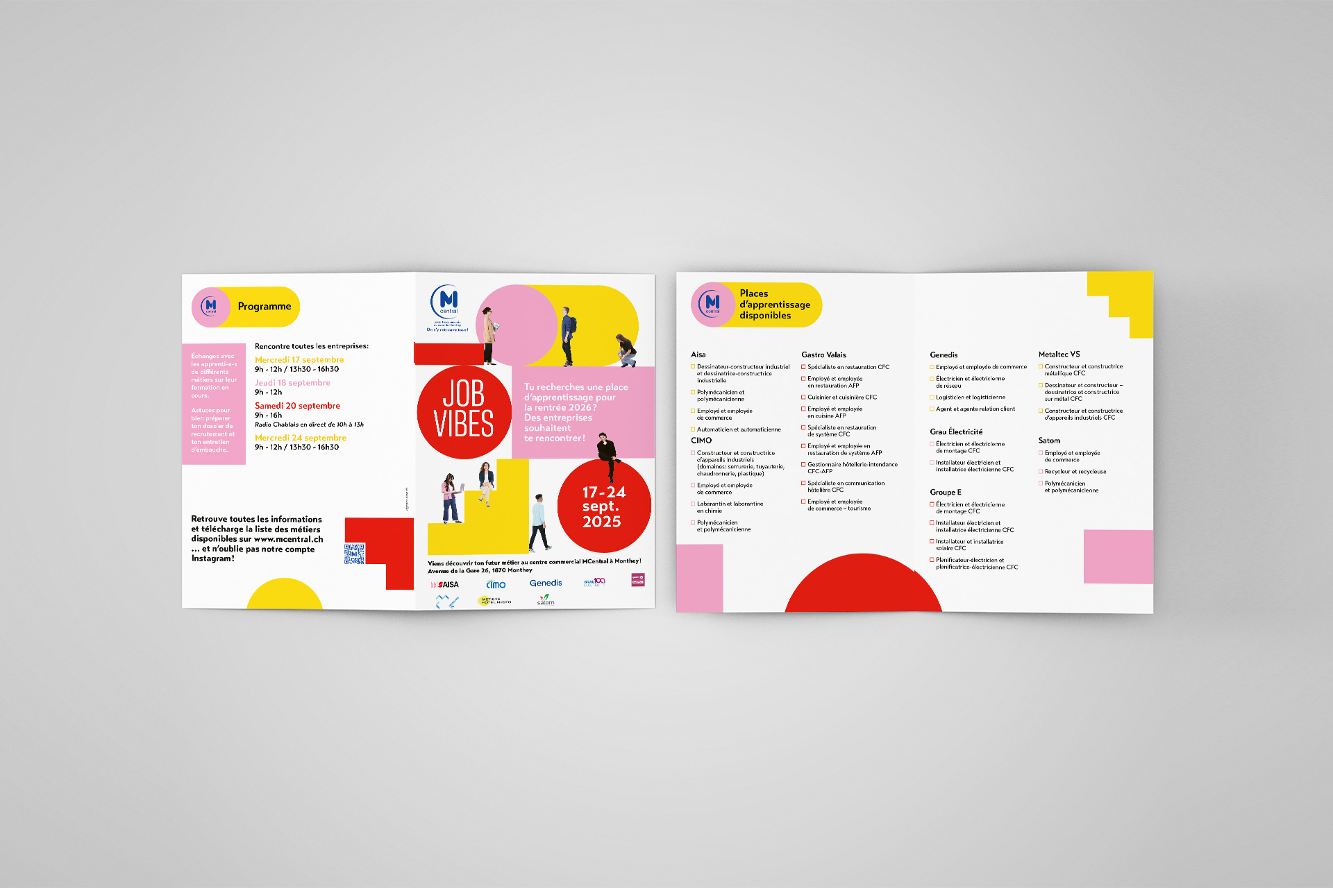 Chaque année, le MCentral accueille JobVibes, un événement dédié à l’emploi, à la formation et à l’orientation professionnelle. Véritable plateforme d’échanges entre entreprises locales, institutions et chercheurs d’emploi, JobVibes dynamise la région et affirme le rôle du MCentral comme acteur engagé dans la vie économique et sociale de Monthey. MAYPOP et NOW* accompagnent également la communication autour de cet événement phare, en assurant sa visibilité et son impact auprès du grand public.